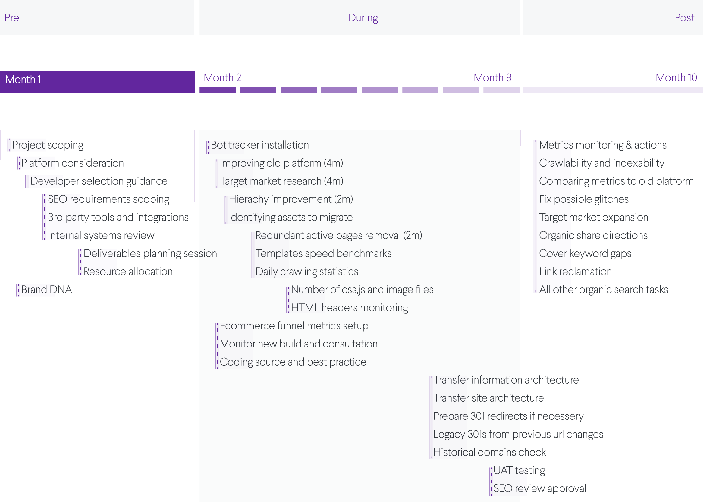 Below is an example of our Migration roadmap when we’re engaged up to 8 months before the migration.